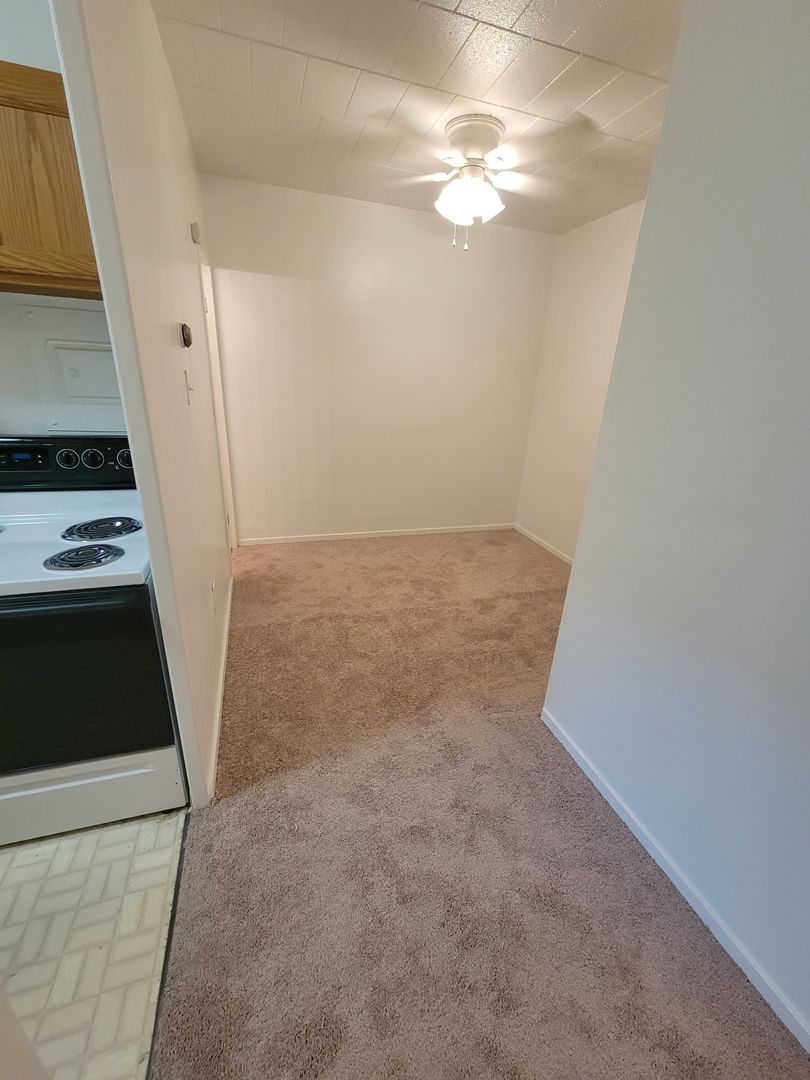 Spacious studio apartment featuring a large open living area, cozy galley kitchen and comfortable wall-to-wall carpeting. Thoughtfully designed for easy living, this studio offers plenty of room to create both living and sleeping areas. Perfect for anyone seeking a simple, functional, and inviting space to call home.